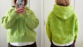 A detailed review of the Regolith pullover knit with DARUMA GEEK yarn. Learn how to adjust gauge for the perfect fit, the unique hood construction, and the dramatic transformation after wet blocking. Includes tips on color bleeding and drying for high-quality results.
