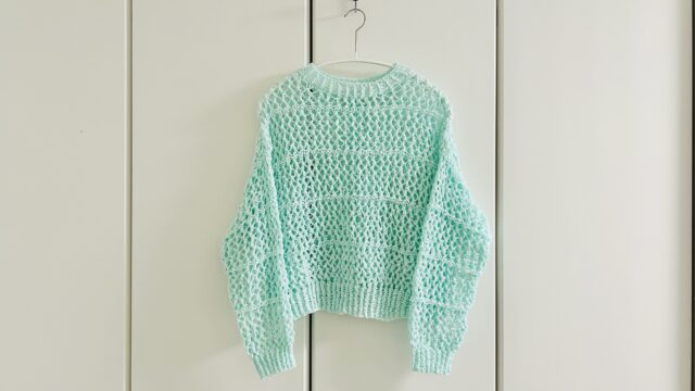ダイヤ模様のメッシュプルオーバー完成!指定糸と代用糸・編んでみた感想