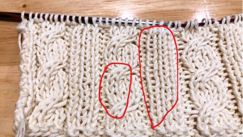 The same thing can even happen in 2×2 rib knitting, not just in Aran patterns.