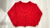 過去にmichiyoさんの著書【やさしく編めてきれいに見えるニットのふだん着】から、右身頃と左身頃で全く同じものを編んで組み合わせるVネックのプルオーバーを編みましたが、見事に左右でサイズが変わっていました。